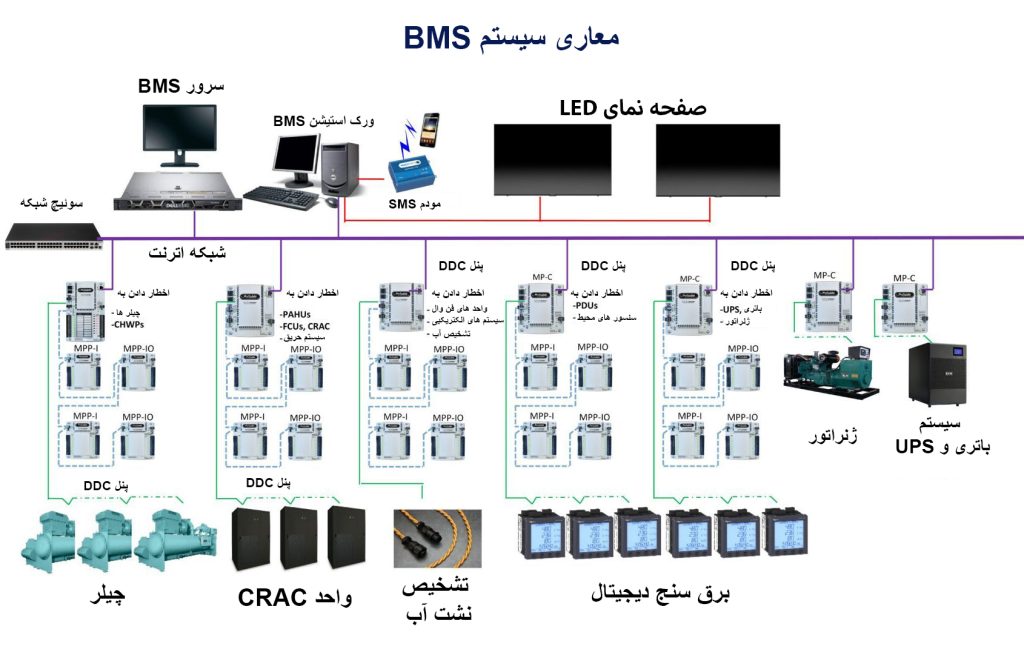 سیستم BMS مسئولیت کنترل و نظارت سیستم های بزرگ مصرف کننده انرژی در یک ساختمان مانند سیستم های روشنایی ، آتش نشانی ، HVAC و ایمنی را بر عهده دارد.