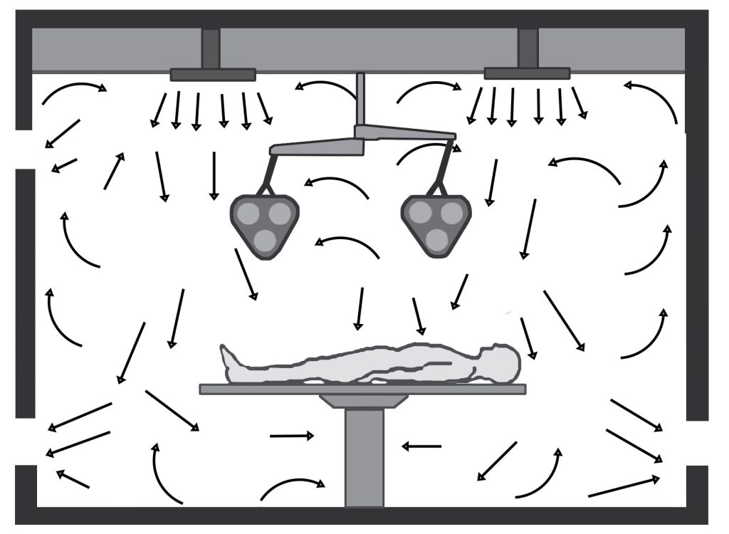 اتاق تمیز با تهویه مغشوش دارای دو حالت یک طرفه Unidirectional و چند جهتی non unidirectional می باشند.