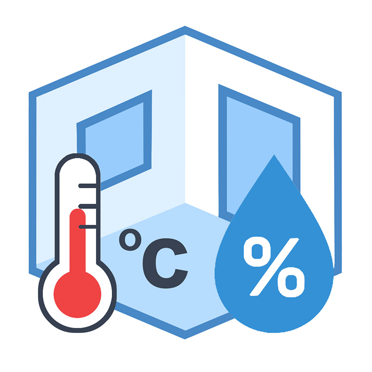 شرایط راحتی دما و رطوبت که معمولاً به عنوان شرایط آسایش کارکنان در زمستان و تابستان قابل قبول می باشد. این استاندارد می تواند در نقاط مختلف جهان تغییر کند. شرایط راحتی دما و رطوبت در تابستان و زمستان درجایی که افراد لباس ضخیم تری دارند و یا کار دارای تحرک بالاتری است لازم است تا هوا خنک تر شده و میزان رطوبت نیز کاهش یابد. میزان مناسب پیشنهادی در استانداردهای معتبر، دمای (۰,۳ ±)۲۲ درجه سلسیوس و رطوبت نسبی (۰,۵ ±)۵۰ درصد می باشد البته جهت جلوگیری از خطرات احتمالی رطوبت هوا نبایستی کمتر از ۳۰ درصد باشد.