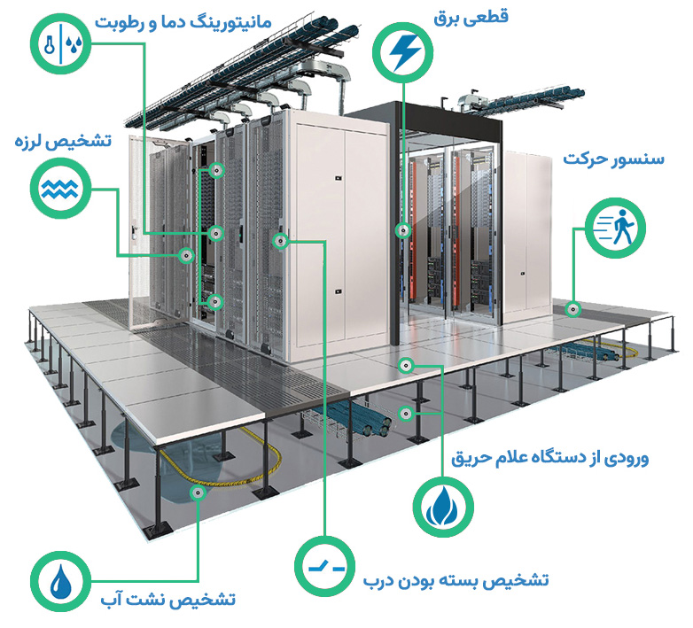 در دیتاسنتر یا اتاق سرور ، تجهیزات شبکه ، سرورها و ذخیره سازهای زیادی جهت ذخیره سازی و مدیریت اطلاعات قراردارند، تجهیزات جانبی مختلفی جهت تضمین عملکرد سرورها ، کامپیوترها و تجهیزات شبکه در حال کار هستند عدم کارکرد یکی از آنها می‌تواند مشکلات زیادی را در ماموریت اصلی یک مرکزداده یا اتاق سرور ایجاد کند بدین جهت سیستم کنترل و پایش اتاق سرور از اهمیت زیادی برخوردار است.
